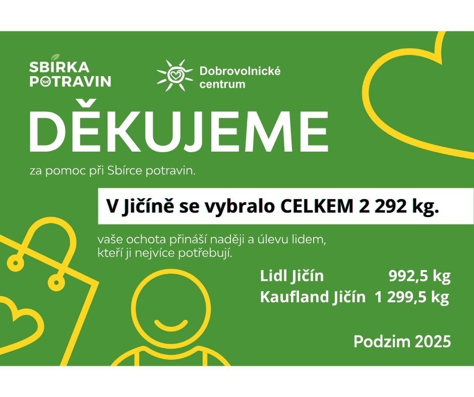 V Jičíně se při sobotní Sbírce potravin podařilo vybrat 2 292 kg trvanlivých potravin a drogerie – což je pro náš region rekordní výsledek!